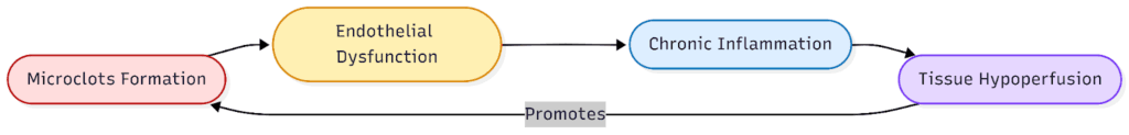 • Microclots and impaired microcirculation: Multiple studies have described fibrin amyloid microclots and micro‑thrombosis in acute COVID infection and long COVID, which may obstruct capillaries and reduce oxygen delivery to tissues, causing hypoperfusion.