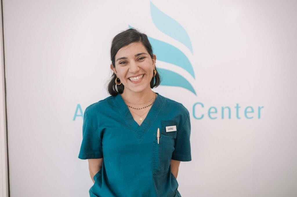 Artemis ist nicht nur die erste Person, die Sie beim Betreten des Zentrums treffen werden, sie verwaltet auch Ihre Behandlungs- und Arzttermine, die Dokumentation und kümmert sich um alle anderen Anliegen. Sie können sie per E-Mail, WhatsApp oder Telefon erreichen. Sie ist buchstäblich das Zentrum unseres Zentrums!